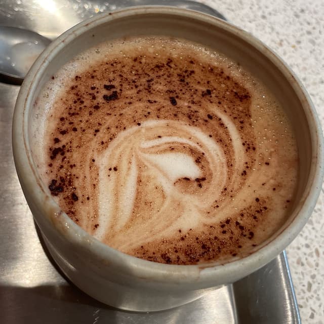 Latte d’avena , burro di arachidi , espresso e cacao. Davvero buonissimo . Si percepisce molto il sapore di arachidi. Locale molto carino e personale davvero gentile. Non è Economico, ma per una merenda diversa dal solito e buona, ne vale la pena 💲 5.50
