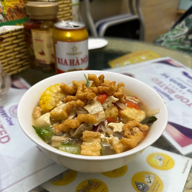 I wasn’t expecting to have the best #bunrieu of my life in a shop known for their #banhmi, but here we are 🙌 I’m actually amazed at how flavoured the #broth was! It’s always the dingy alley shops that pull off the greatest feats, isn’t it? 😌 The broth actually tasted just as how I remembered #crab to taste, even better now that it’s #crueltyfree 🤗 The shop is full of heartwarming vegan propaganda & staffed by an ecstatic child that speaks fluent English. The service here is amazing! For only VND 35k, you get an insane value for just how much #tofu they give you - #beancurdskin too! 😋 Not only that, but as is evident from the photo, they also topped the #noodles with an amazing #homemade fritter that they apparently also sell in-store 😮 I get that #baguettes aren’t for everyone as I’m not huge on them, but with this on the menu there’s bound to be an option for everyone here 😇 I love this restaurant! #bestpicks