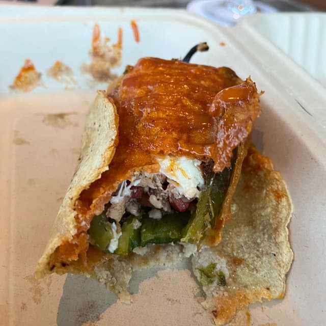 Sin duda este fue nuestro taco favorito, es relleno de un guiso de soya con queso y la combinación con el sabor del chile esta de 10