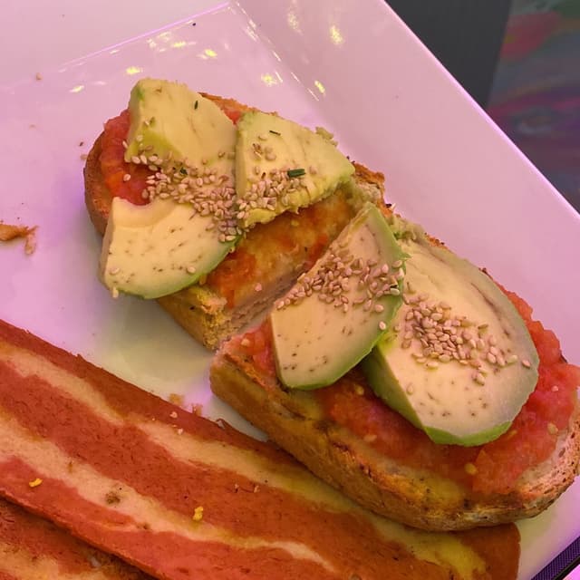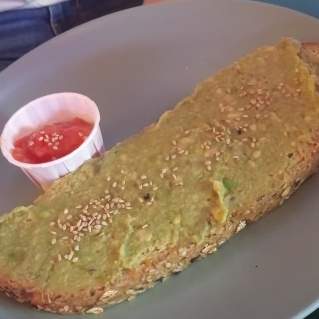 Tostada de tamaño grande, con aguacate y semillas de sésamo, aparte un tarrito de tomate triturado. La degustó mi comensal, dice que estaba muy rica. https://youtu.be/QlaiMB3dobA?si=JlfUMV18kzMqFgnW #saveveganrestaurants #endspeciesism #animalliberation #animalrights #friendsnotfood #thefutureisvegan #veganismisjustice #veganismiseasy #friendsnotslaves #amigosnocomida #stopeatinganimals #stopspeciesism #untileverycageisempty #antiespecismo #choosecompassion #chooserespect #ifitsnotveganitsnotfood #sinoesveganonoescomida