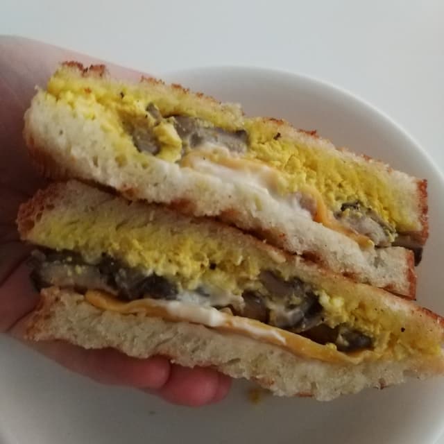ah amazing. cheesy enough for me!!! & glad that the cheese melted nicely; great for mushroon lovers too👍 definitely pricey, but once in a while i wouldn't mind getting this to treat myself - it is fairly packed w ingredients and can be filling truffle flavour wasnt overpowering (or insufficiently truffle depending how u see it HAHA 😂) "sourness" of the sourdough toasts not very strong (though this might be personal preference!) tofu scramble, sauteed mushrooms with garlic and seasoning, vegan cheese, vegan truffle mayo in between 2 slices of warm crispy sourdough toast #vegantruffle #vegantoast #ahimsa