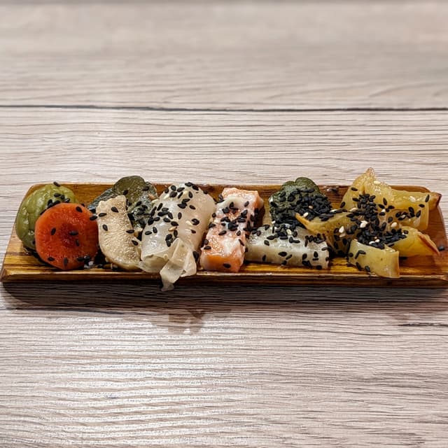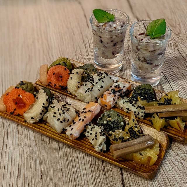 Selection of housemade pickled vegetables such as ume, carrot, daikon radish, starfruit, and non-spicy kimchi. Interestingly, they were all pickled in different ways, including kasuzuke with sake kasu, shiokojizuke with shio koji, asazuke, etc. Great as a salty and sour appetiser to start off the omakase experience, and could also be used as an accompaniment to the other dishes! Inspired by Shojin Ryori, i.e. allium-free Japanese Zen temple cuisine. P.S. Check out my reel of the entire experience of having a vegan omakase at a pet-friendly micro restaurant! https://www.instagram.com/reel/CxFqkicSezK/ #sgvegan #glutenfree #wholefoodplantbased #wfpb #fermented #omakase #womenowned