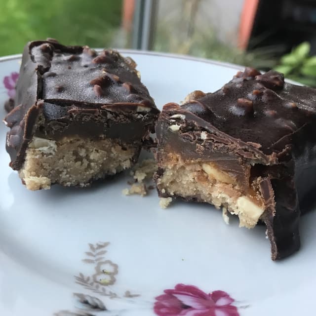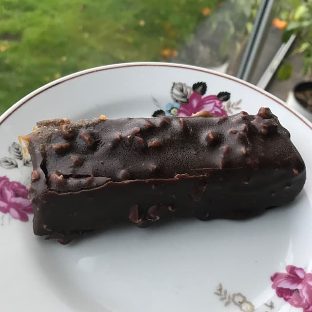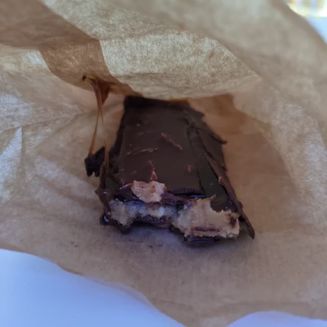 This #bar was very sweet and tasty. It doesn’t seem to replicate any non vegan bar which I know, but definitely tastes more like #dessert and less “natural” than usual similar looking vegan bars, that are made with dates and peanut butter :D this had real #caramel and unique base layer. It looks a bit broken here, but it survived a long trip from this amazing #veganbakery in #warsaw to Lithuania😁. #sweettooth #plasticfree #veganisnotscary