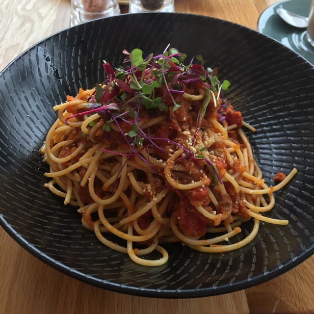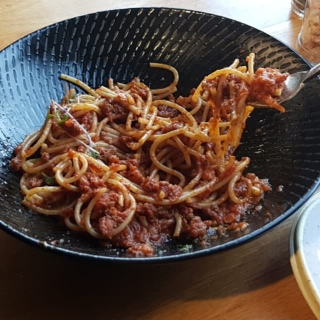 hemapatel3 years agoSee TranslationThis bolognese is the best I've tasted. They use Beyond mince and it is perfect. Spiced well. It is definitely a hearty meal that warms you0