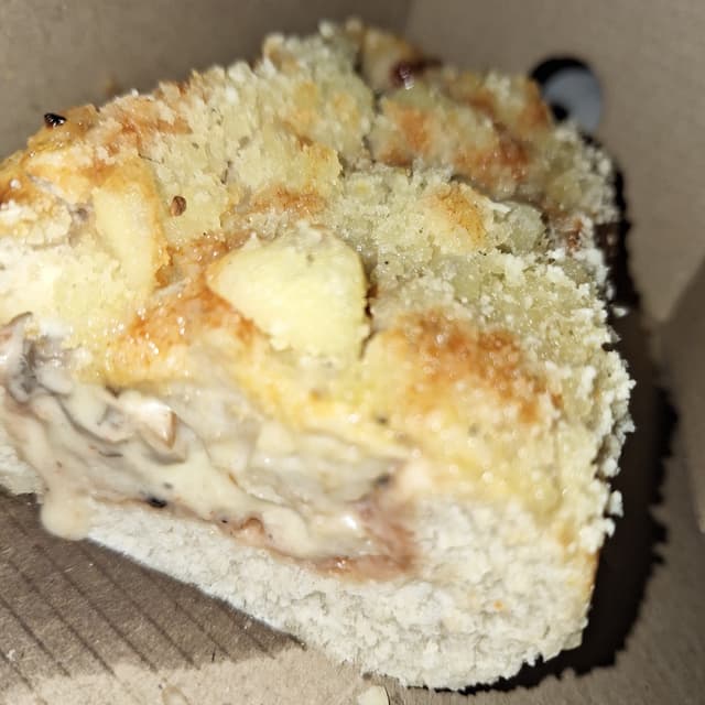 I really enjoyed the chicken and mushroom sub! It's filled with vegan chicken strips, mushrooms, with a sweet chilli mayo and topped with vegan mozzarella.