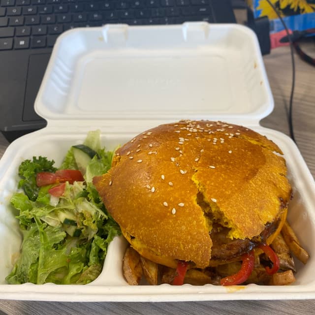 I have had a lot of stuff from this place before. Generally very overpriced on Uber Eats so only using that option when I see promos for this shop, otherwise better to buy in-store. Burger part was good, the chips are very oily and sometimes the salad dressing has had an oddly different taste. Swipe ➡️➡️➡️➡️ to see the Uber eats option.