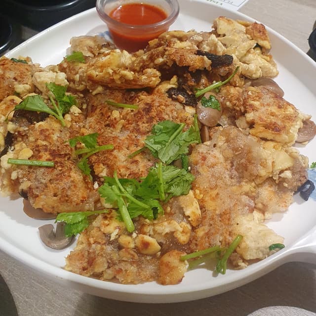 Ok… this was the tastiest vegan orh luak among all the sauté’s in my opinion! I’ve got no idea how close it was to the real stuff, never tasted #orhluak when I was omnivorous. So I saw this as a vegan #mushroom #omelette.. it was pretty good one. #veganegg #cilantro #chillisauce
