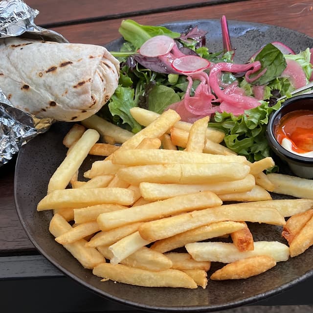 Vegan2 years agoSee TranslationMonday night is souvlaki night at the Cornish and of course there are vegan options! This is the vegan spiced seitan souvlaki, with garlic/chilli sauce, chips and salad. $150
