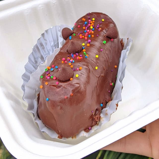 I don't really know how to describe this "vegansito" treat besides that it's really good and it's not always available because they sell out on a regular basis 😋😭😅 It's shaped like a Twinkie (without the taste of one) but tastes like vanilla pound cake with a berry jelly filling and dipped in chocolate and topped with chocolate chips and colorful nonpareils. It's definitely different (in a good way) and I really enjoyed it 😋 Instagram: KornyVibes Website: www.kornyvibeshtx.com #berrylover #LocallyOwned #HoustonVegan #VegansOfHouston #HoustonVegans