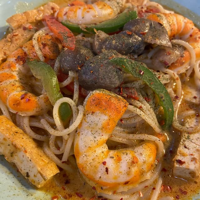 vegan3 years agoSee TranslationNot my favourite dish. It wasn’t as flavourful as I hoped it would be. I liked the mock prawns (?) but I felt like the bell peppers didn’t go along as well as I would have liked. It’s ok but nothing special. Their paninis are good tho so try that out!0