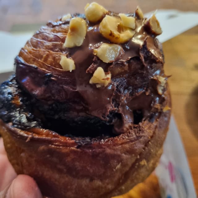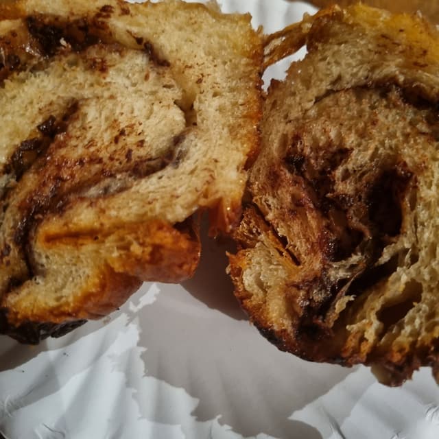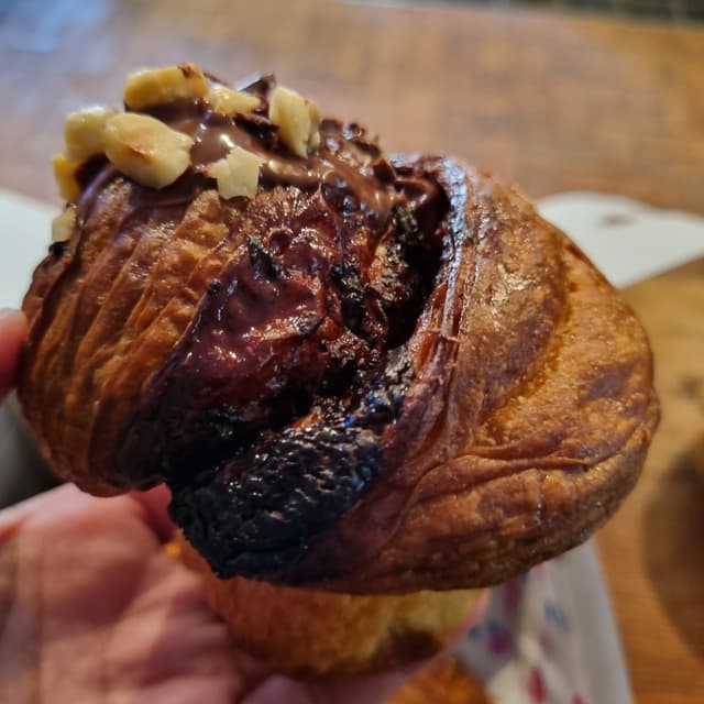 This was unfortunately rather disappointing. The bun was burnt a little on top and there wasn’t nearly enough chocolate spread in it (only really what is visible on top). The spread and hazelnuts were lovely but they made up a fairly small part of this bun so overall it wasn’t a great purchase. #veganismisjustice #veganfortheanimals