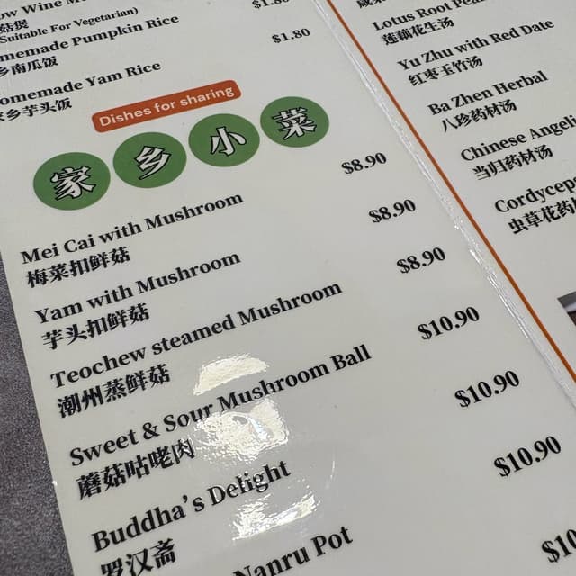 Slices of yammy yams and shroomy shrooms . Well-cooked and pretty flavourful. A brilliant side to go with your rice or noodle dish. #yam #mushroom Vego cafe with a mostly vegan menu. their food has so much flavour, and is pretty reasonably priced as well. Service is fast and people are lovely. Great place for a family meal. Printed menu in English and Mandarin. Mall basement. Accessible via escalator or lifts. #vegetarian #TaiSeng #circlelineSingapore