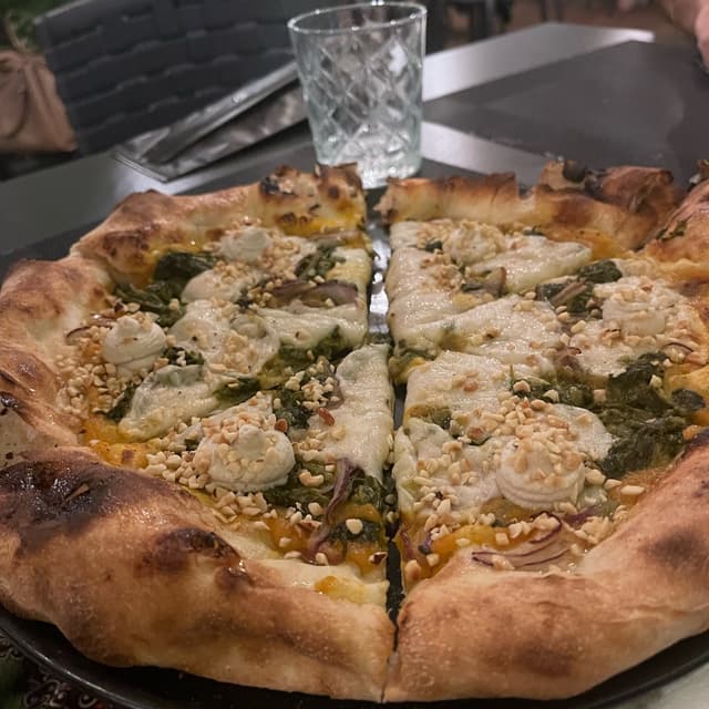 Questa pizzeria ha diverse opzioni vegan… Stasera ho provato là Girasole con crema di zucca che purtroppo non si sentiva , mezzarella buona , friarielli che si sentivano, cipolla di Tropea che purtroppo non si sentivano, cremoso di anacardo buonissimo il mio preferito ed infine la granella di nocciole che non mi è piaciuta Nel complesso una buona pizza