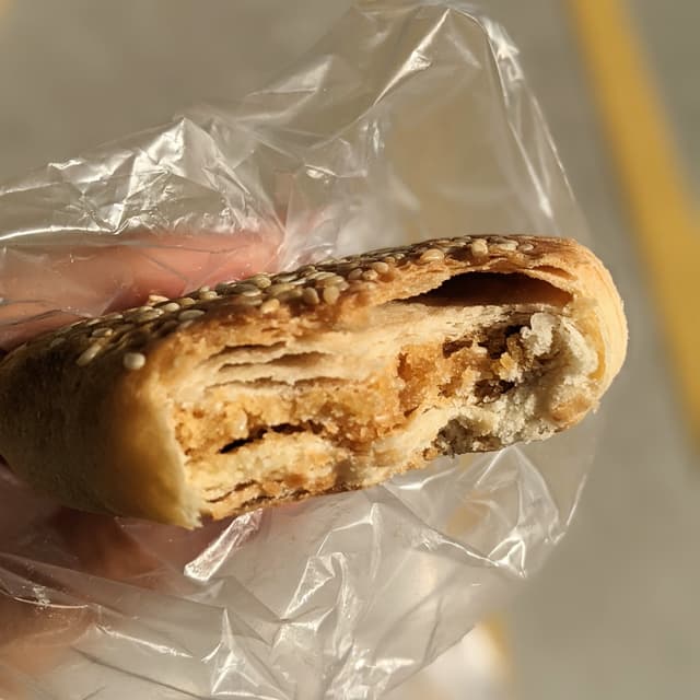 Life can be strange. This traditional flaky piah is supposed to come wit sesame, but for some reason I could hardly taste the sesame in the filling, while distinctively tasting the sesame in the other #veganfriendly piah, the husband piah. The crust itself was good - still warm from the oven with palpable bite.