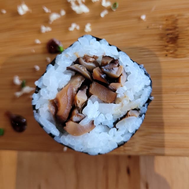 yourfriendjenhace 3 añosVer TraducciónSimple #shiitake #mushroom roll, 6 pieces for $6. A nice simple roll that is elevated when dipped in a little soy sauce. I like the more complex rolls from this restaurant, but this is a good choice if you want something lighter.0