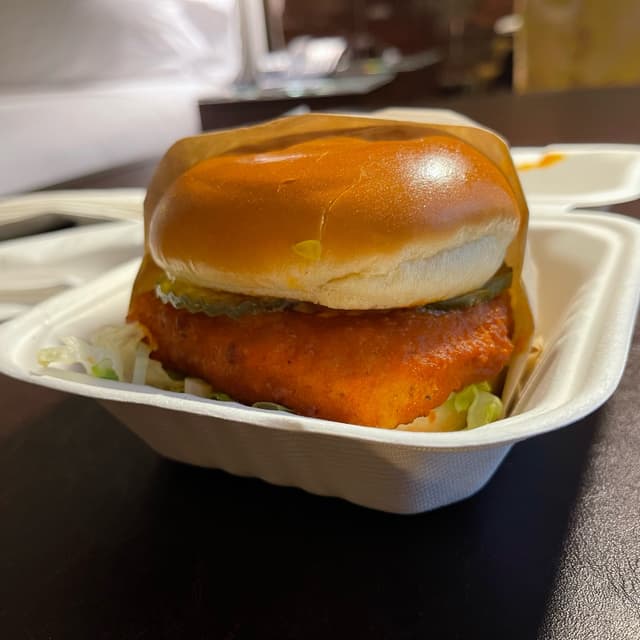 The chicken sandwich was delicious! The cheese was melted and the pesto was creamy. But the chipotle aioli dipping sauce was the star of the show!