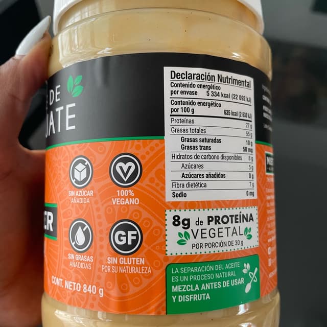 Esta crema de cacahuate no tiene absolutamente nada de azúcar añadida, es sólo cacahuate. Eso la vuelve más saludable, pero el sabor es tan natural que no me gusta. Preferiría que tuviera algún endulzante natural. Me costó 105 pesos mexicanos y tiene más de 800 gramos.
