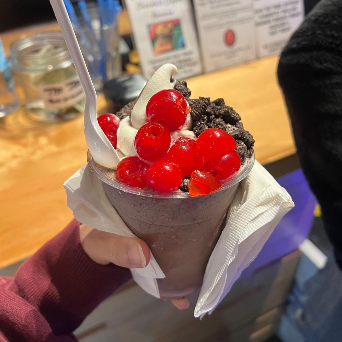 custom oreo and cherry wizard with chocolate and vanilla twisted oat soft serve. the soft serve is delicious and i appreciate how generous they are with the toppings!