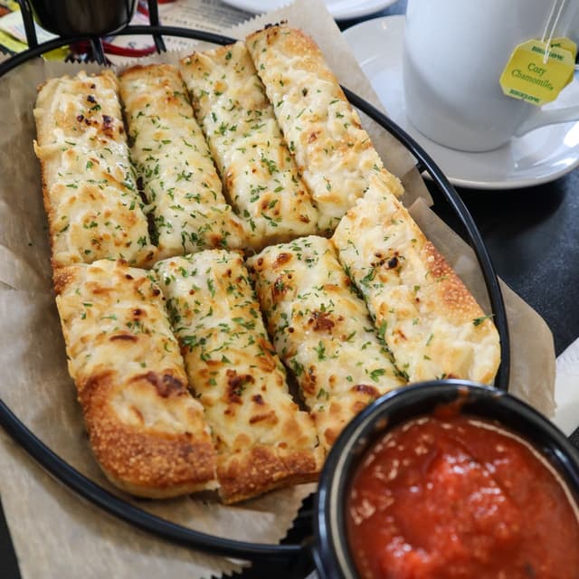 The bread stick dough is made in-house and brushed with a #vegan buttery garlic spread and topped with both Follow Your Heart brand #mozzarella #cheese and parmesan. It's then topped off with herbs and spices. They're also served with two sides of marinara sauce, but you can also substitute for ranch if you wish. This dish is only $8, which is a lot cheaper than the majority of their items and a good value. I loved the garlicky kick these had and where I didn't love the sweet marinara sauce for my pizza, it worked way better for the salty and garlicky sticks. They were served warm and even smelled delicious!