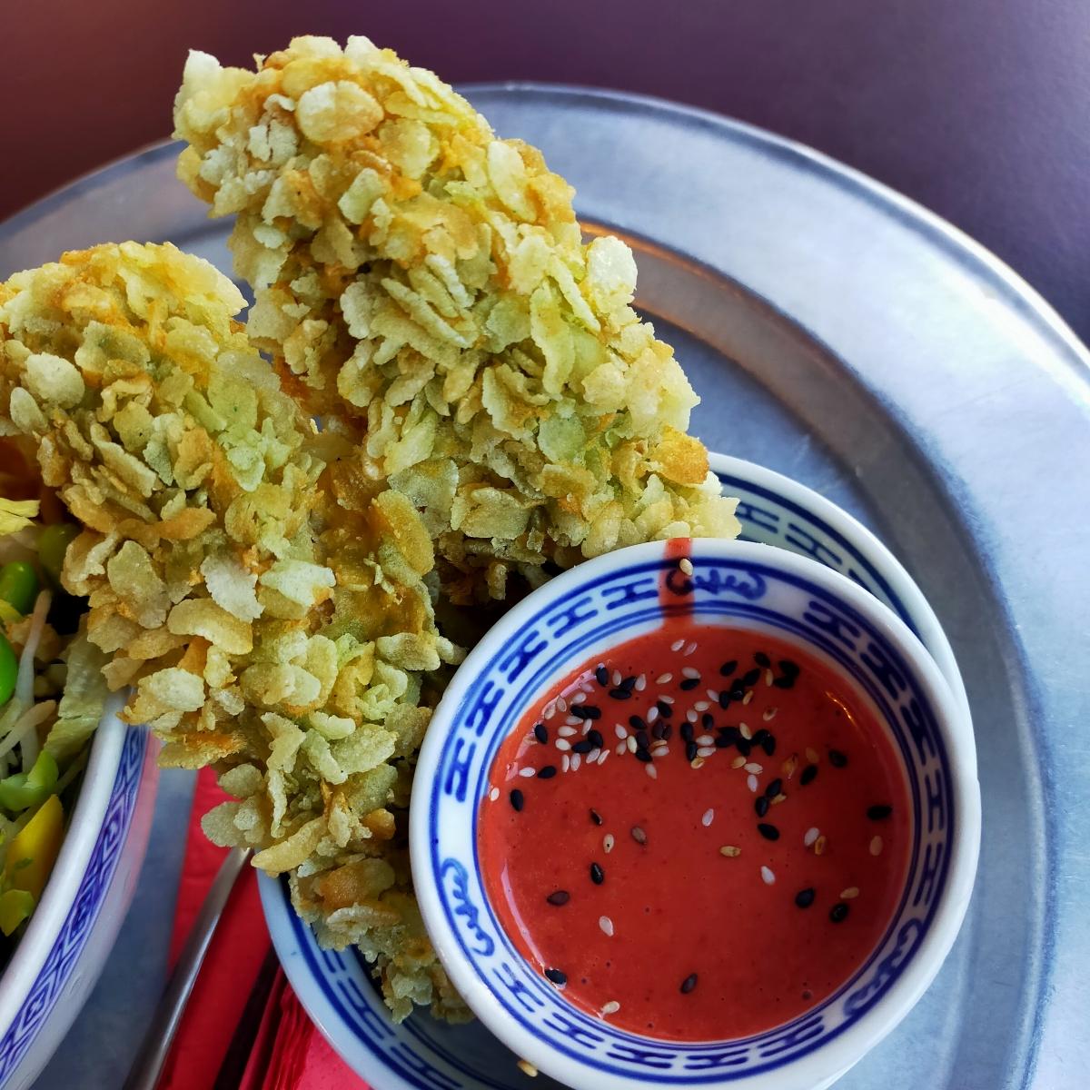 These tofu sticks covered in rice flakes were good, but they could have been a bit warmer. Overall the result was good, and the sauce was quite tasty. 5.50€ for a quite big portion of two. 100% vegan restaurant in the nice neighbourhood of Friedricshain 🧡