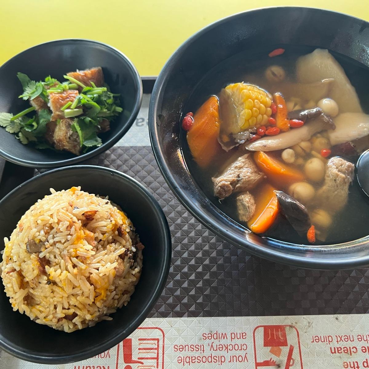 Love a good bowl of nutritious soup! Very tasty and generous with ingredients. Pumpkin rice taste great even on it’s own too. Added vegetarian Ngor Hiang, but it kinda taste like the normal ready made mock ones.