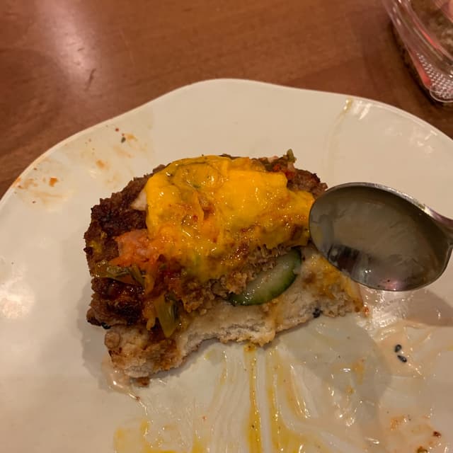 Vegan 🌱 yo egg 🍳 😮 salty yolky egg like 👍 aioli ate in parts with 🥄 😆 🥳 entree