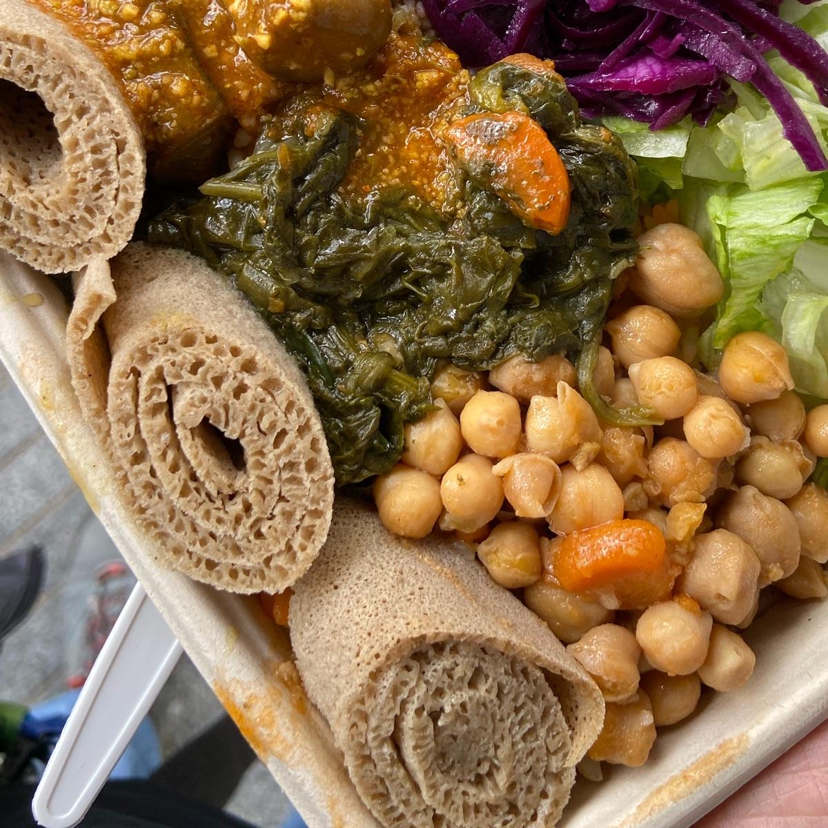 Ethiopiques is a fully-vegan ethiopian food stall in the SouthBank centre food market. It was the only #fullyvegan stall in market at this time (the other stalls might have an option or two). They do different meal deals, including a gluten-free one and a salad-only. If you enjoy ethiopian food and wholesome food full of flavour and are in the area this is one to consider.