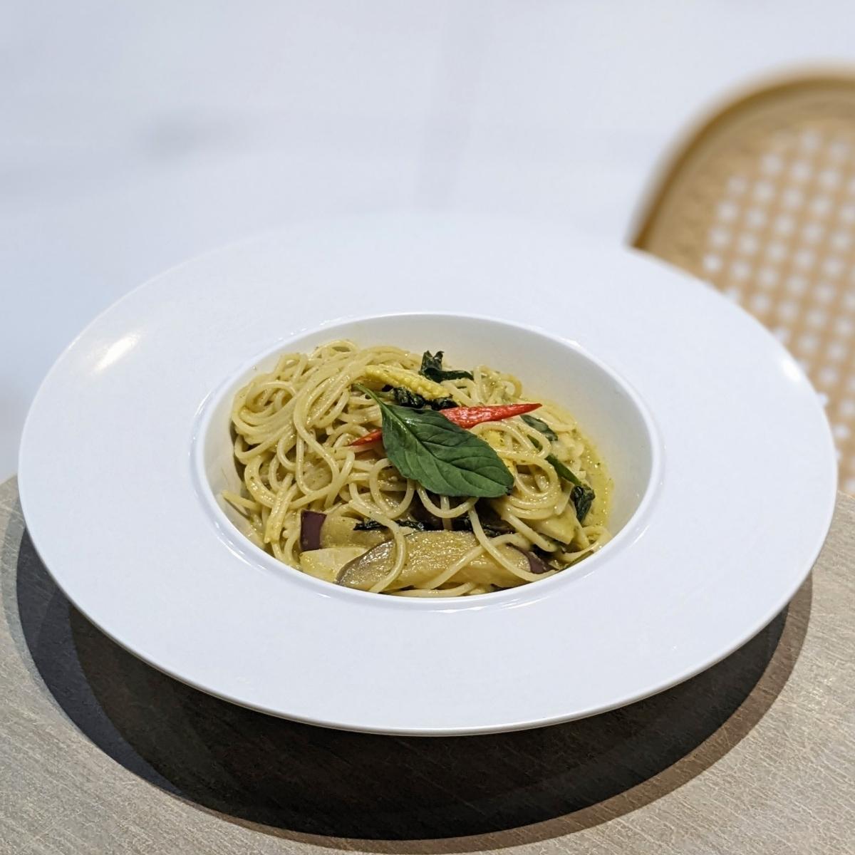 New dish! ✨ Fusion item consisting of pasta strands coated in green curry sauce, alongside a token amount of bamboo shoots, baby corn, and eggplant. 🍝🌽🍆 Taste was good and aromatic, especially considering the fact that no alliums were used! Personally I would have appreciated a greater quantity and variety of ingredients though, in particular a protein source haha. They also have a new Thai Green Curry Rice Stone Pot Dish which seemed more nutritionally balanced and value-for-money!!(Allium-free, $14.90) #sgvegan #alliumfree #thaifood #asianfood #wholefoodplantbased #wfpb