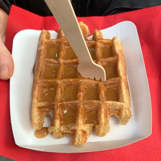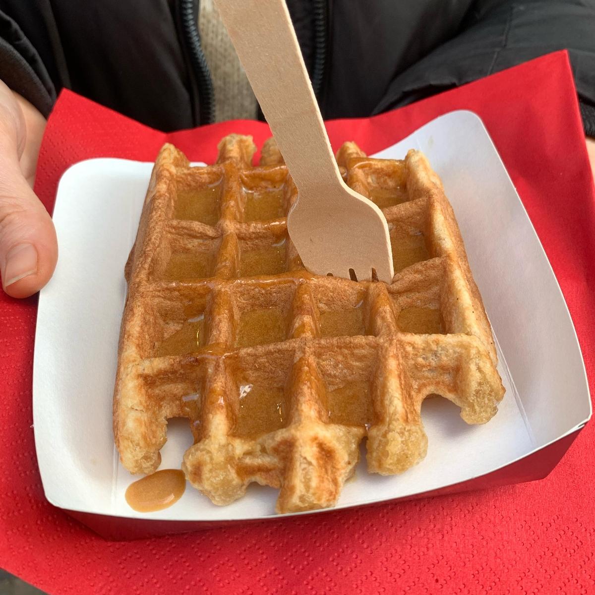 Gofre vegano y sin gluten, con caramelo salado. Me gustó mucho, aunque prefiero el tradicional con chocolate. Precio: 5,50€.