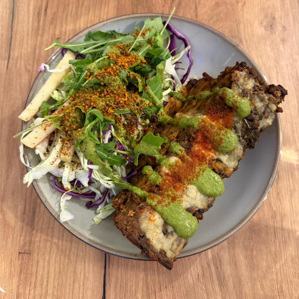 This was decent but not the best lasagna I’ve had. It didn’t have a lot of flavour and the pesto just tasted like mint. The salad was also super bland. It tasted really healthy and was only €9.95 though. #veganlasagna #veganrestaurant #jenandryesagavemoon