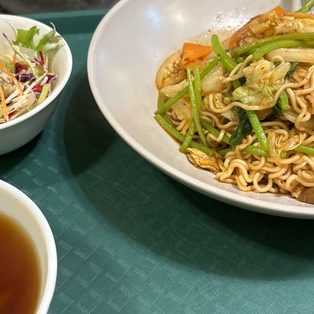 $9.90 for a set meal (includes a main, a soup and a salad) is a bargain for the portion size. This one is full of noodles and veggies and tofu.