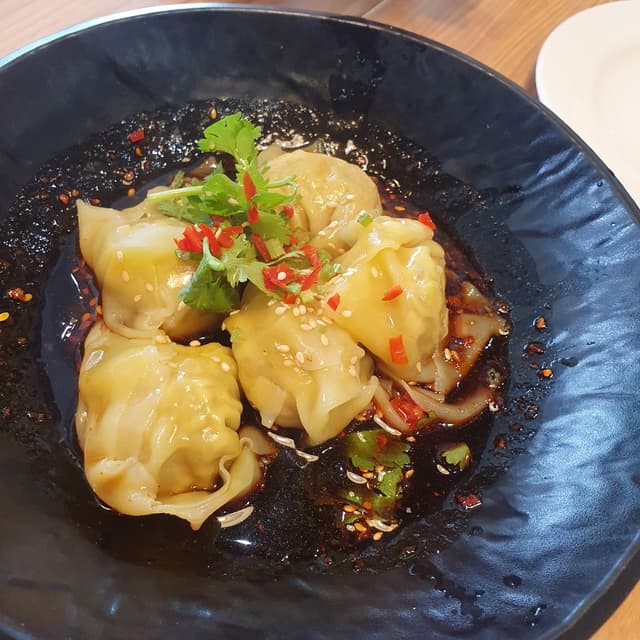Or #红油抄手 forming part of a 4 course set (ala carte at $9) with bite 👉 number one factor determining success or failure when it comes to #dumplings. Pricey yes (to be expected on a commercial level) after the volunteering stint peddling the exact same for Vesak (2023 at half price). So much work going into each parcel 👉 the bouncy innards, the wrap, the boil and #chillioil prep. The team of hands could never meet the tummy and chewy demands of patrons wanting a piece or 5 of the #chinese action then Go for it if you've got the urge to splurge. Greendot group, are you hearing me? The price is not right, either that or bigger balls pulease #soy #alliumfree #parsley