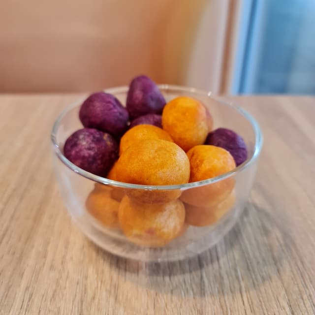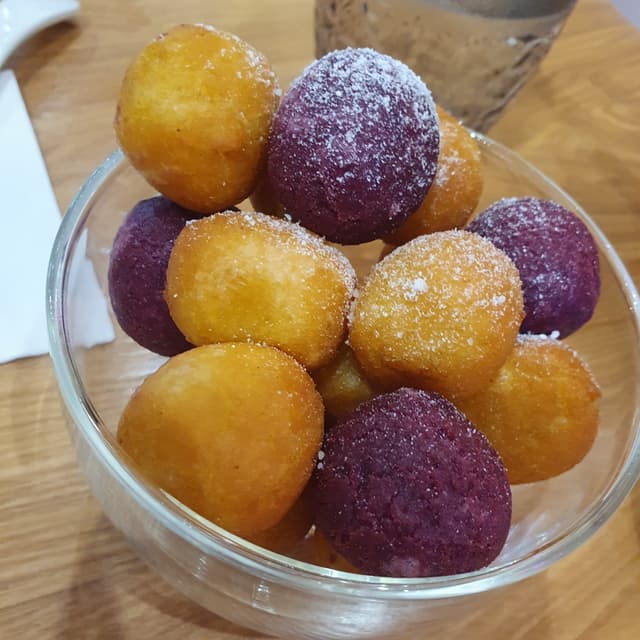 $6 gets you between 12 - 15 orbs of pretty featuring both purple and orange #sweetpotato. Texture was a letdown with too soft a mochi like stretch. Sugar count bearable sans icing sugar ☺️ #snack #alliumfree #dessert #deepfried #veganisnotscary