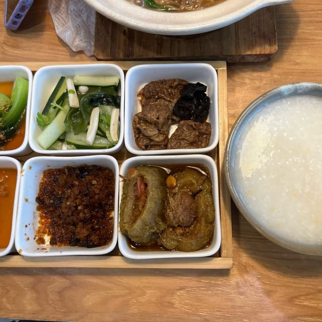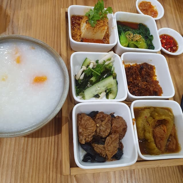 Beautiful presentation. Porridge texture was great. A few of the side dishes may be a little salty to some.