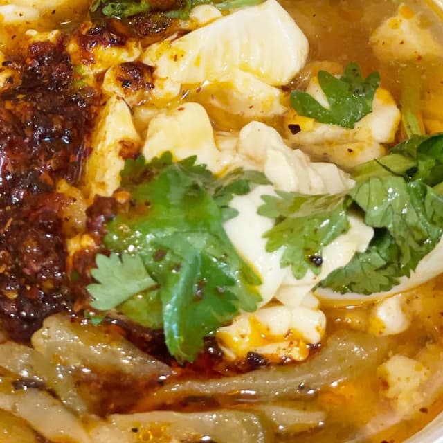 The tofu soup with Za chai pickles was sour and spicy and good. A bit too oily.