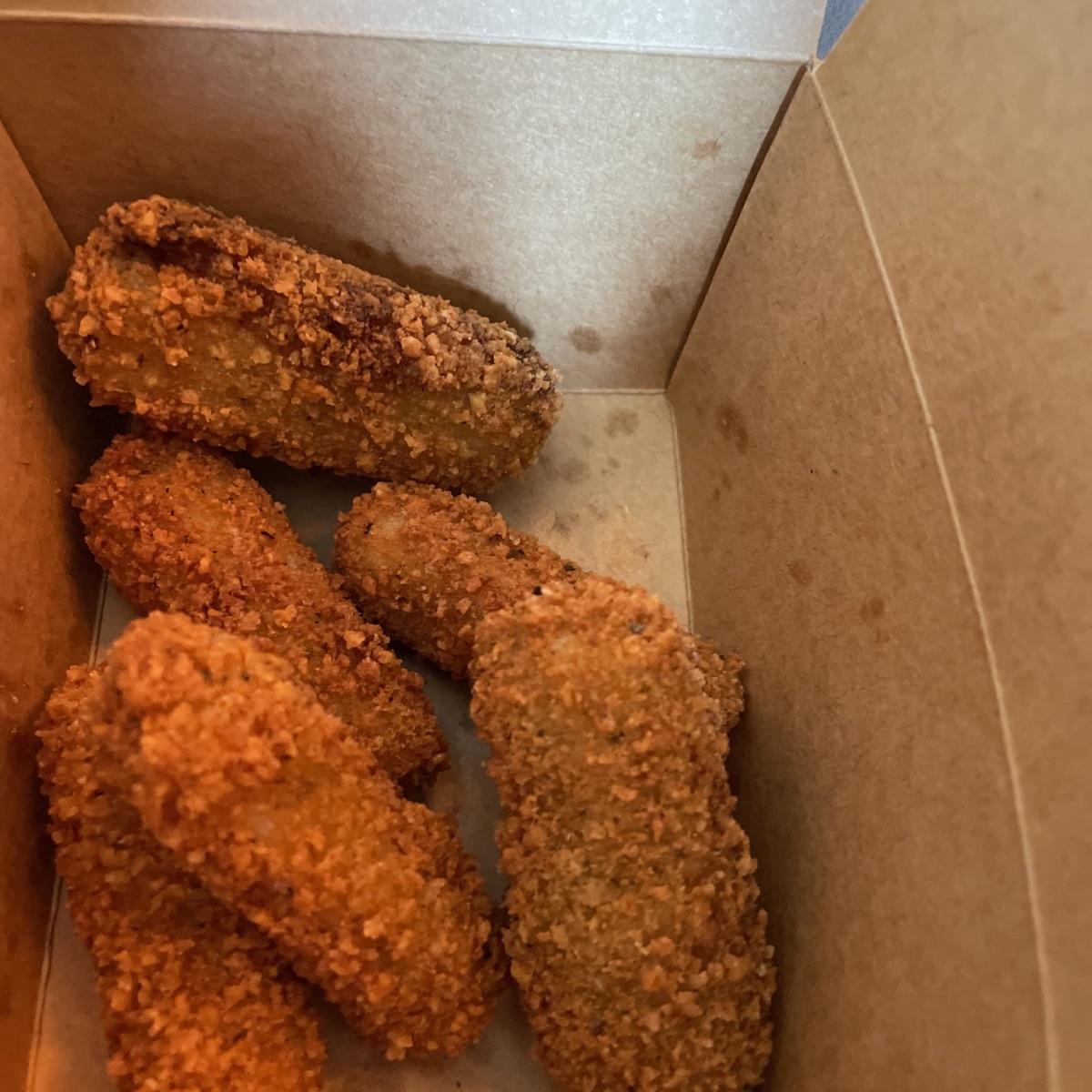 These cheese sticks are delightful. Nice crunch. Not too heavy. Decadent treat