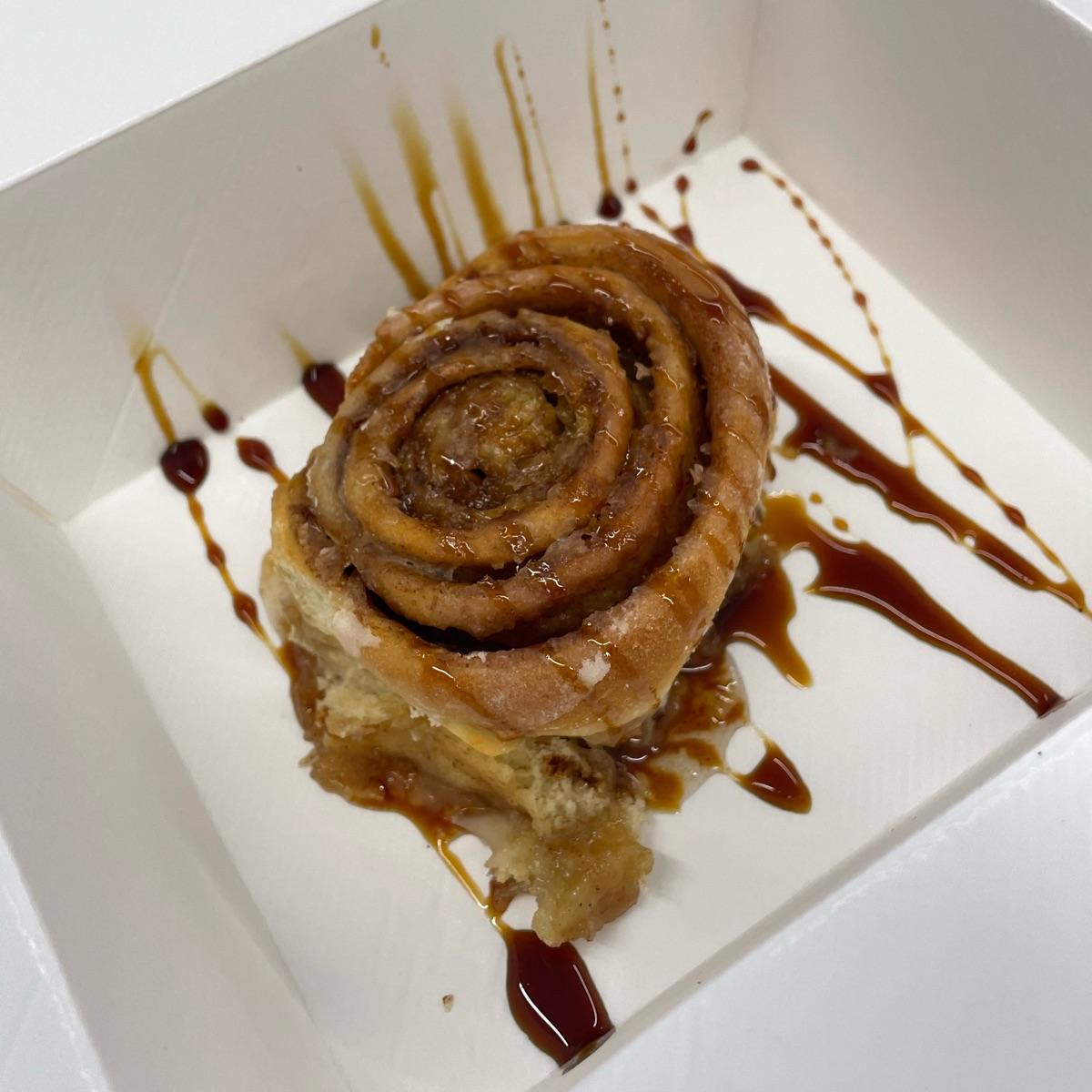Cinnamon roll was delicious and gooey. They added caramel syrup and warmed it up for me which was lovely 😋