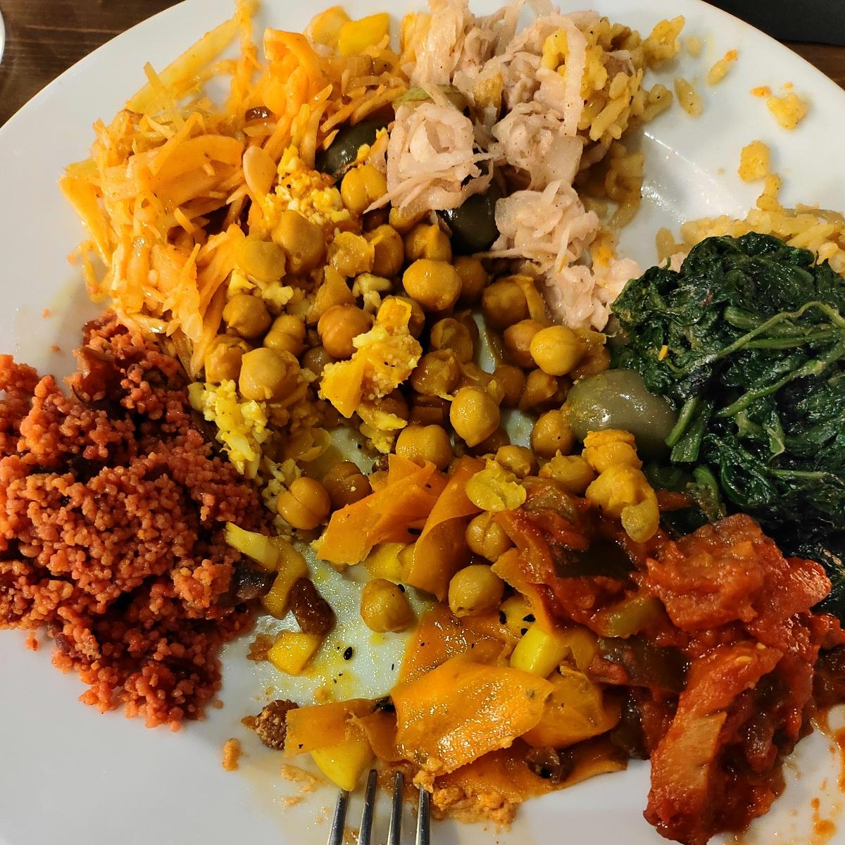 Un buffet con una vastissima scelta di piatti dettagliatamente spiegati dal personale.