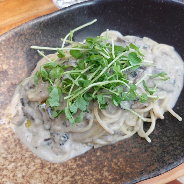 according to their staff, the best pasta dish that they recommended. a lovely cream vegan option but relatively mild tasting!