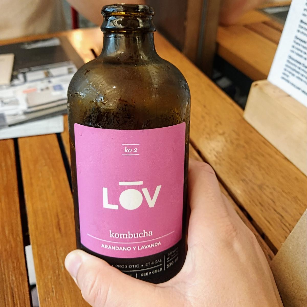 Molto particolare, il sapore è piacevole, sembra alcolica ma in realtà ci sono solo tracce di alcool. È una bevanda fermentata leggermente frizzante al mirtillo e lavanda. L'ho accompagnata all'insalata.