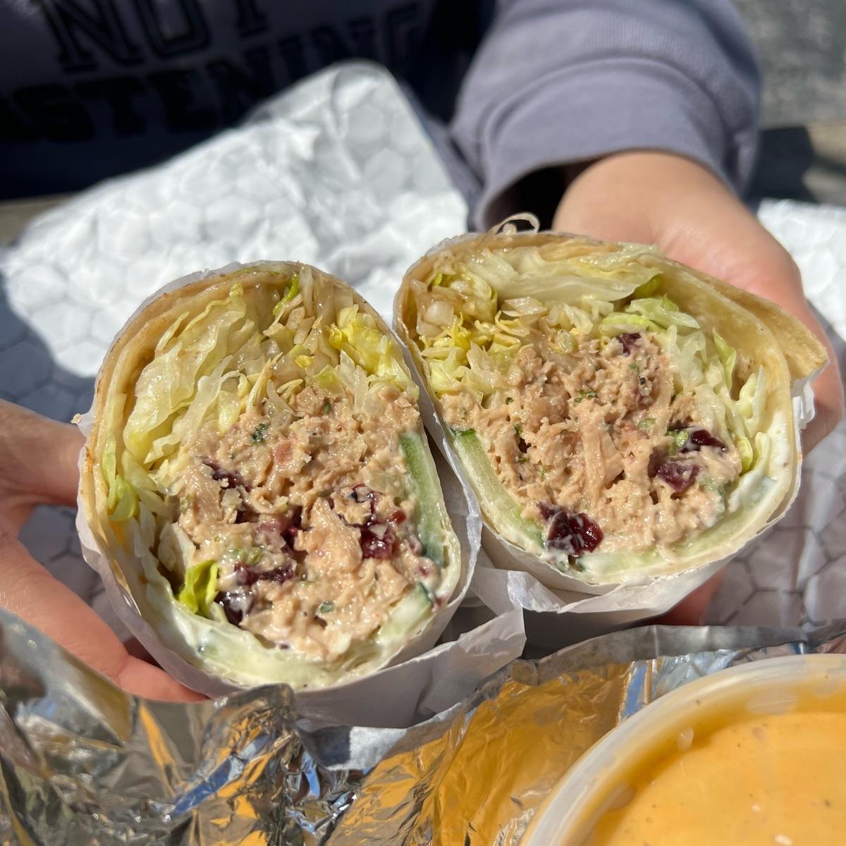 i was floored by this wrap. i don’t usually get chicken salad type stuff but another person had ordered it and i wanted to try some… best chicken salad i’ve ever had! this genuinely tasted more like chicken salad than any nonvegan chicken salad. i wouldn’t be surprised if this fooled an omnivore.