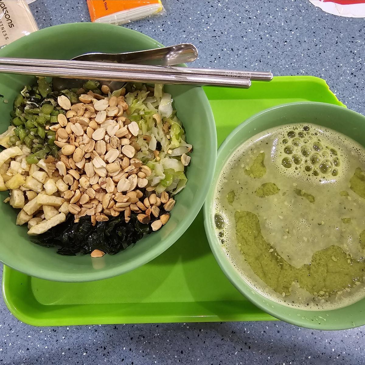 Tastes delicious. Thunder tea is good. Asked for no rice to make most of the #delicousandnutritious meal. #fresh and #crunchy prep. They add peanuts on top!!
