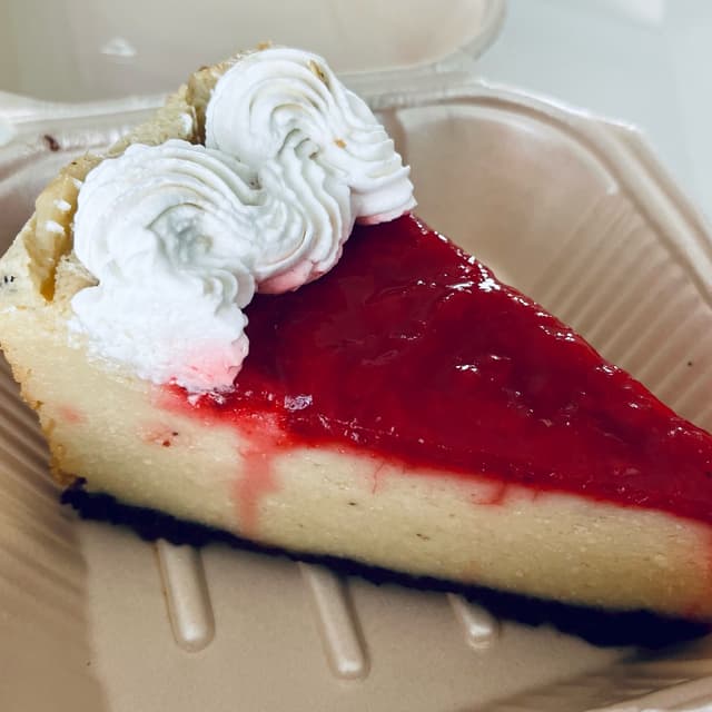 Pedi el postre para llevar porque me llené mucho 😅 Está muy rico este cheese cake, la base es de galleta oreo, el relleno de almendras y llevar mermelada de fresa. Lo que no está muy rico es la crema batida. En cuanto al precio es un poco caro porque cuesta $130 y la rebanada no es muy grande, fuera de eso todo bien 👍 #vegandessert #vegancheesecake #ditchdairy #dairyfree #dairyisscary