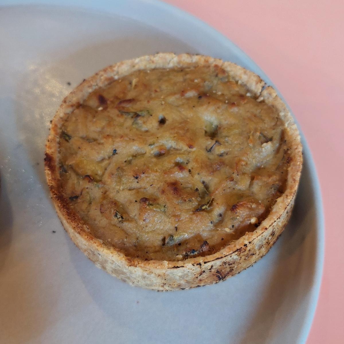 Outro sabor de quiche da padaria, este é de abobrinha. Não contém glúten. Adorei este recheio, super cremoso e saboroso. A versão mini é bem pequena, mas dá pra saborear cada pedacinho. Boa opção para experimentar os sabores antes de pedir a versão grande. #quiche #veganquiche #zucchini #abobrinha #padariaartesanal #restaurantevegano #saopaulo #brasil #brasilvegano #veganin2024