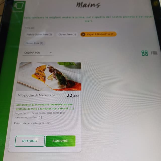 Per esempio, é aperto 7 giorni su 7, dalla colazione alla cena - anche in agosto chiude pochissimo - i camerieri sono professionali e molto gentili, si ordina con tablet potendo selezionare direttamente i piatti vegani di cui c'é davvero una buona scelta, tra l'altro i dessert sono 9 e sono tutti vegan e gluten free.