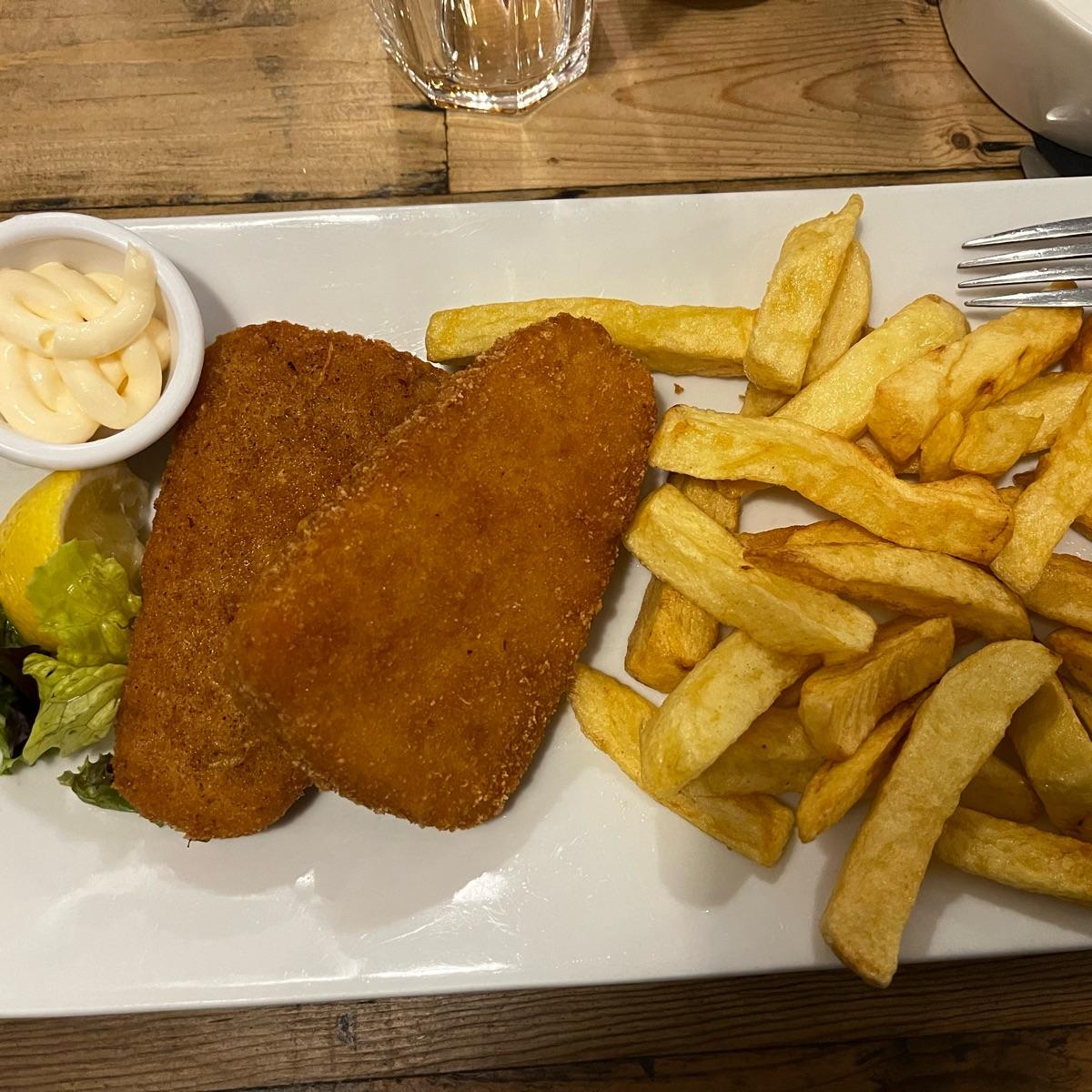 fish and chips vegan, non so come sia possibile ma sembra di gusto e consistenza pesce fritto, mi ha lasciata piacevolmente sorpresa davvero ottimo, il locale è piccolo e confortevole, consiglio assolutamente