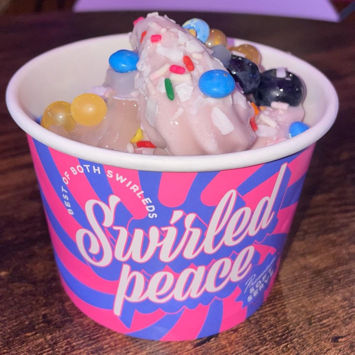 Creamy and indulgent, this new flavor is super yummy and delightful. The unique and interesting Taro flavor. Come try it and enjoy karaoke at Swirled Peace on Wednesdays! #swirledpeace #dallas #vegandallas #dallas #texas #govegan