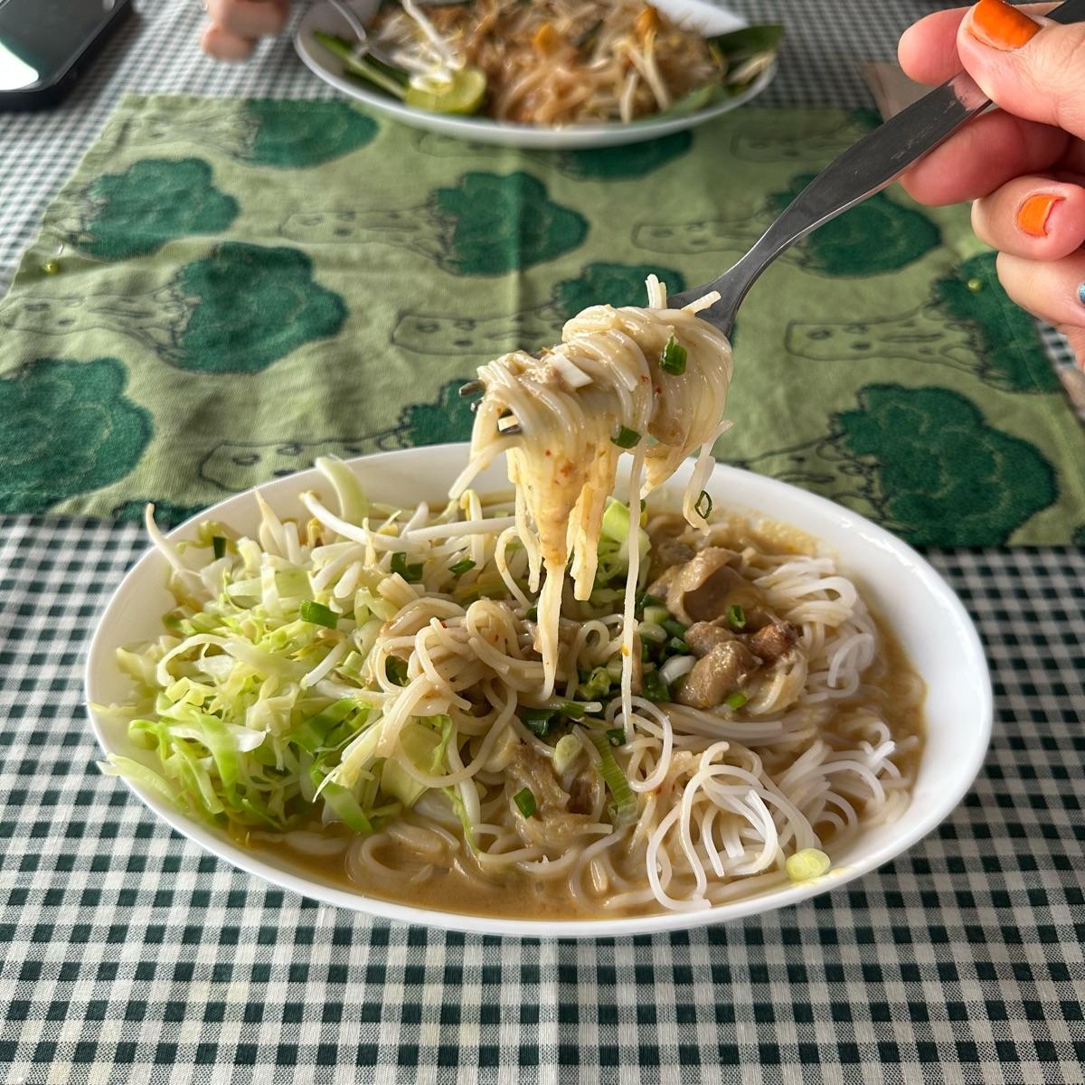 This was delicious! 😋 If not rather unlike the omnivore #khanomchin I’ve had before 📡 It’s less “fermented” and has a coconut #curry base that’s far less pungent 🎏 Regional variation, perhaps? 🤭