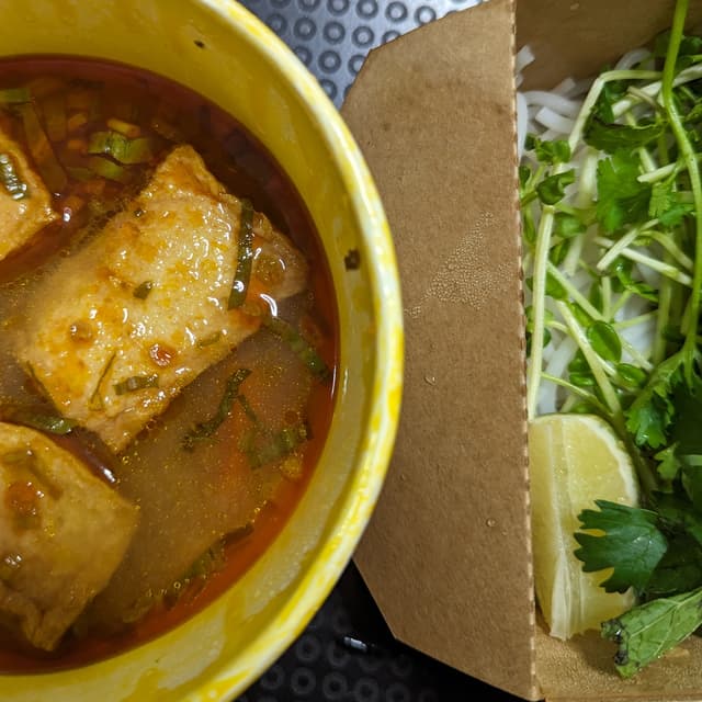 I am a huge fan of tomato-based soupy dishes, so I naturally really enjoyed this dish. I've never had the non-vegan equivalent before, but I definitely really enjoyed the #umami and sweet and savoury flavours of this dish, without wishing that it had crab in it. The #crab tofu that comes with this dish is pretty unique and I appreciate that it serves as a form of protein for this dish, along with the mock fishcakes. I personally prefer the flat rice noodles that come with the pho to the thick rice #vermicelli here, but I guess the vermicelli goes better with the soup here. I first had this dish about 1.5 years ago, back when it was still $11.80, but unfortunately inflation has struck again.