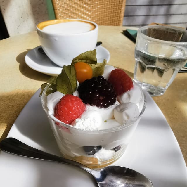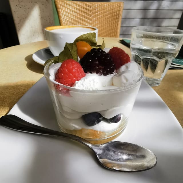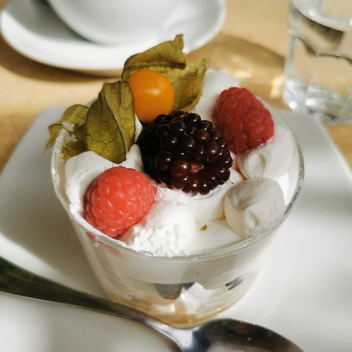 La panna era delicata ma piacevole e senza retrogusti e i frutti di bosco super freschi e succosi. L'unico difetto è che c'era pochissimo pan di spagna.
